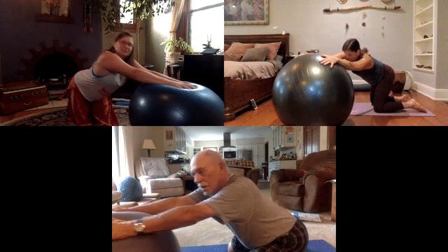 Moving slowly through therapeutic positions to rehydrate the connective tissue and ease tensions of ...
